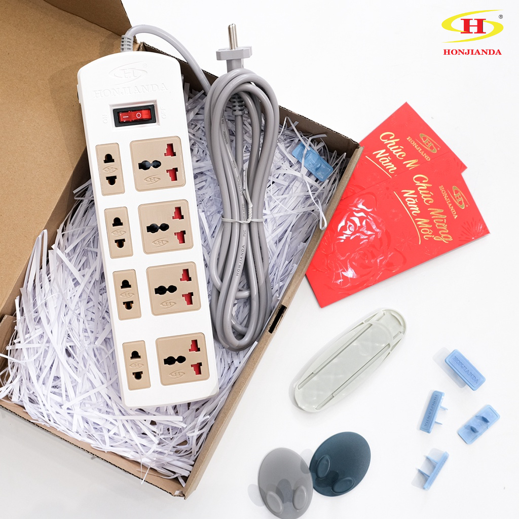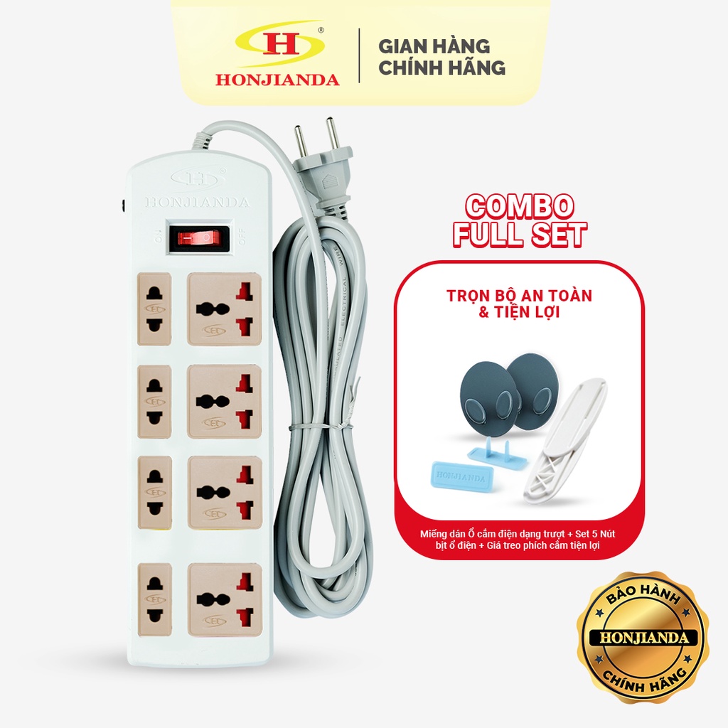 Thiết Bị Điện Gia Dụng > Mạch điện & Phụ tùng > Ổ cắm điện & Dây nối || [Mã LIFEBMO44 giảm 15% đơn 99K] [COMBO FULL SET] Ổ cắm điện Honjianda 0448B 3m + đủ bộ phụ kiện tiện lợiCòn hàng