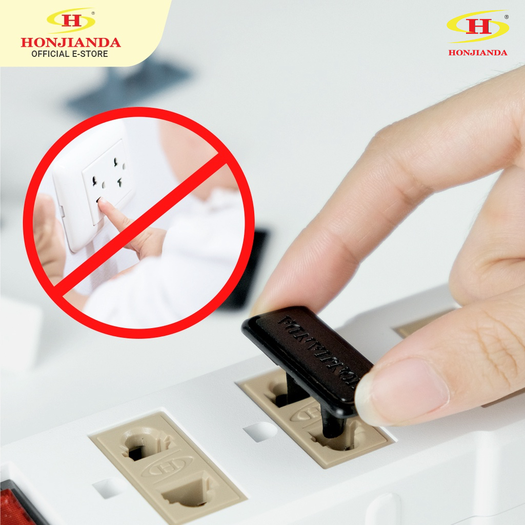 Set 2: 01 Ổ cắm điện Honjianda 0448B 3m + 2 miếng dán ổ điện + 2 set nút bịt an toàn