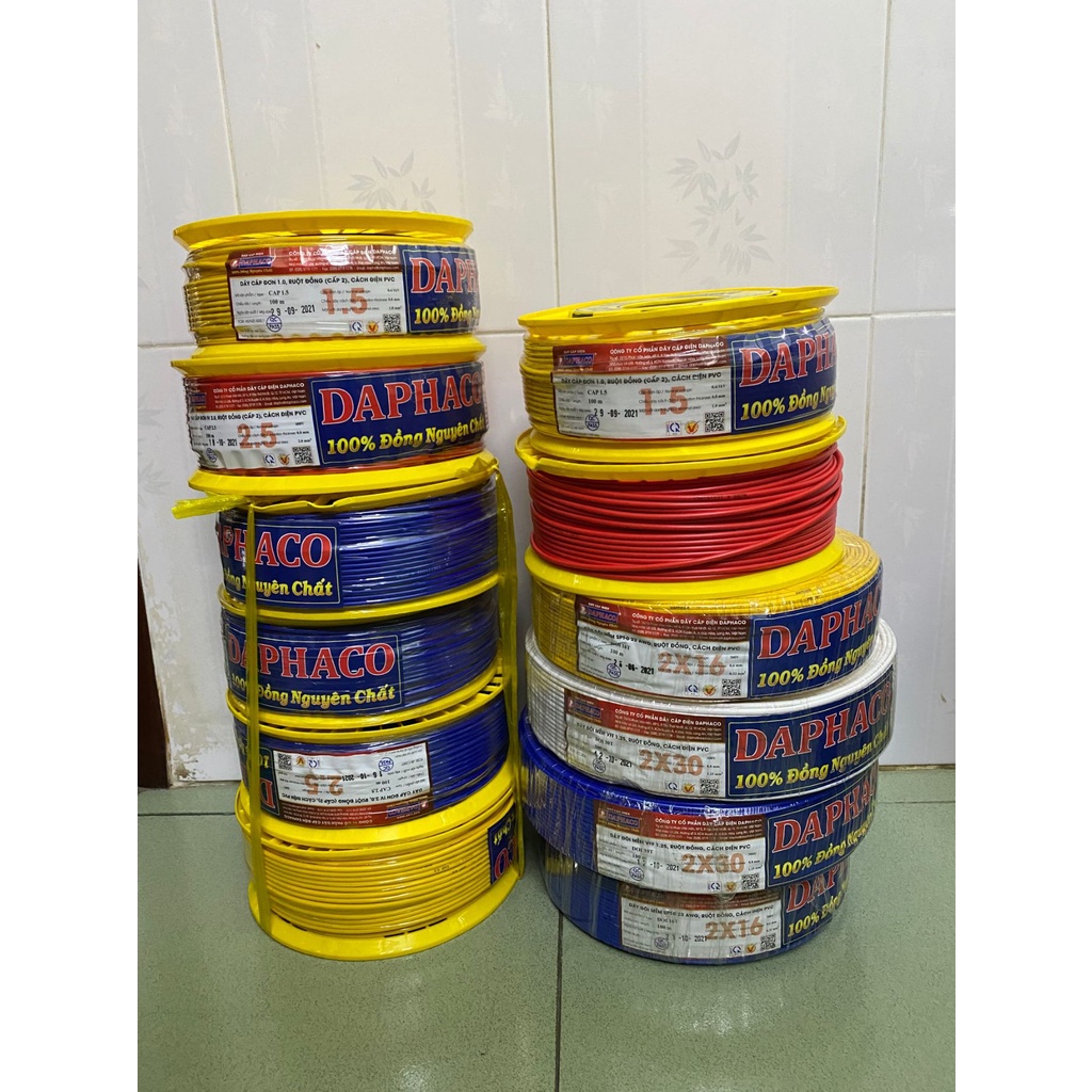 Combo giá rẻ (sỉ), 1 cuộn 100m dây điện Daphaco, dây đôi mềm 2x16 (2x0.5), 2x30 (2x1.5), dây đơn (cáp đơn) 1.5, 2.5