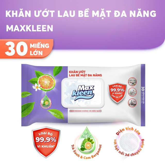 Giới thiệu Combo gồm 1 chai Nước + Khăn Ướt Lau Bề Mặt Đa Năng MaxKleen