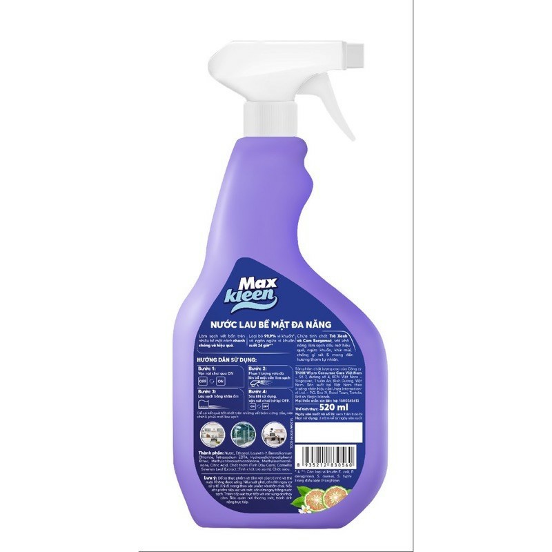 Làm sạch vết bẩn, vết dầu mỡ và loại bỏ vi khuẩn trên nhiều bề mặt cách nhanh chóng và hiệu quả. Giúp không gian trong nhà luôn sáng bóng, sạch khuẩn với hương thơm mát tự nhiên.