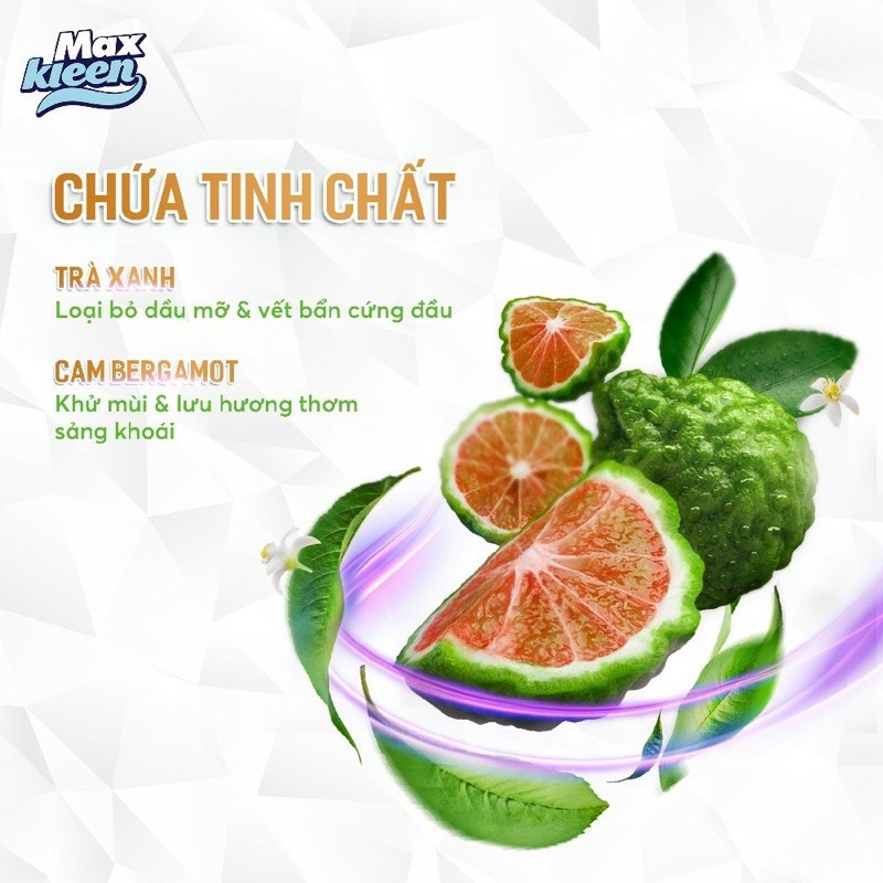 Chứa tinh chất Trà Xanh và Cam Bergamot, với khả năng làm sạch dầu mỡ hiệu quả khử mùi, chống gỉ sét & mang đến hương thơm mát tự nhiên.
