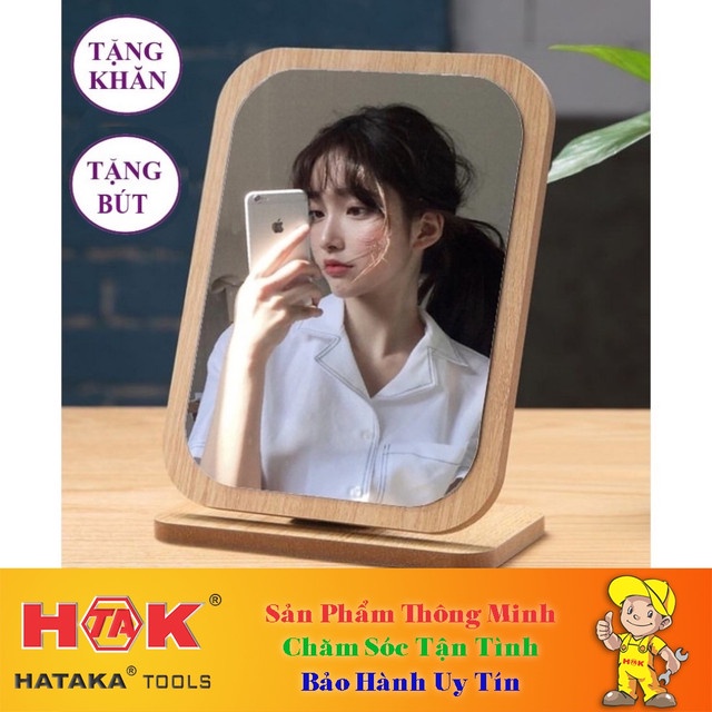 Combo Gương Soi Khung Gỗ Hàn Quốc Để Bàn Trang Điểm S2 - Trang Trí Phòng Ngủ
