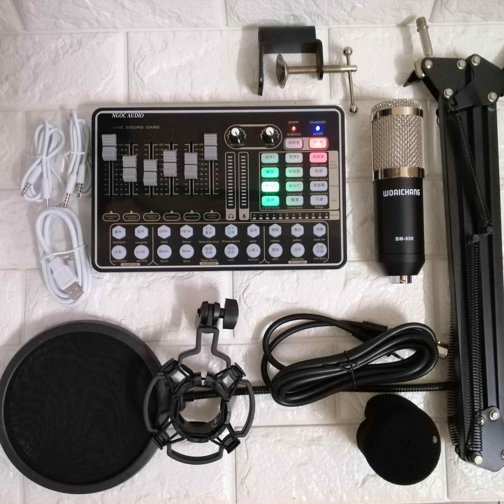 Giới thiệu Combo Hát Thu Âm Livestream Mic Bm900-Sound card H9 có auto tun kèm phụ kiện bh 6 thán
