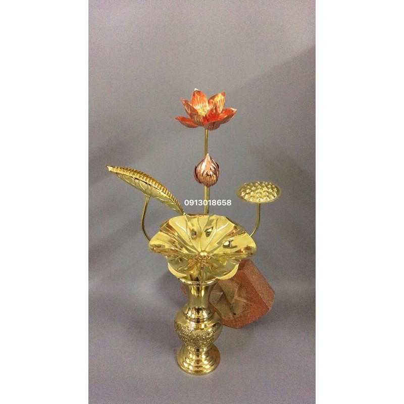 Combo Hoa sen đồng 1 bó 5 cành + 1 lọ hoa đồng vàng nguyên chất.