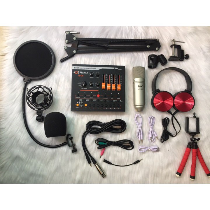 [Combo Hoàn Hảo] Combo micro AT100 kèm Soundcard V11 - hát karaoke, thu âm, livetream bán hàng, live bigo FULL PHỤ KIỆN