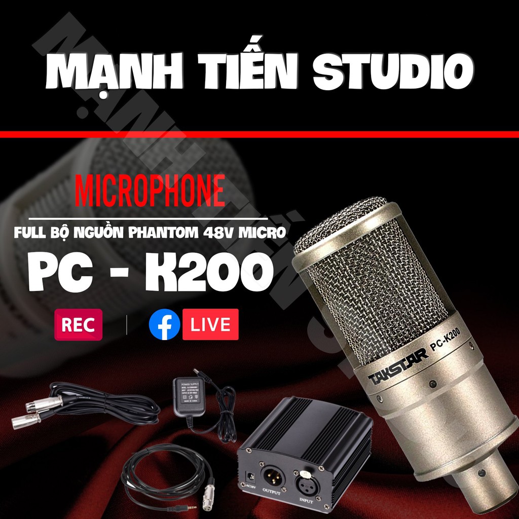 [COMBO HOT] Micro thu âm chuyên nghiệp Takstar PC K-200 + nguồn 48v + canon + xlr 3.5 cho thu âm, live stream fb, tiktok