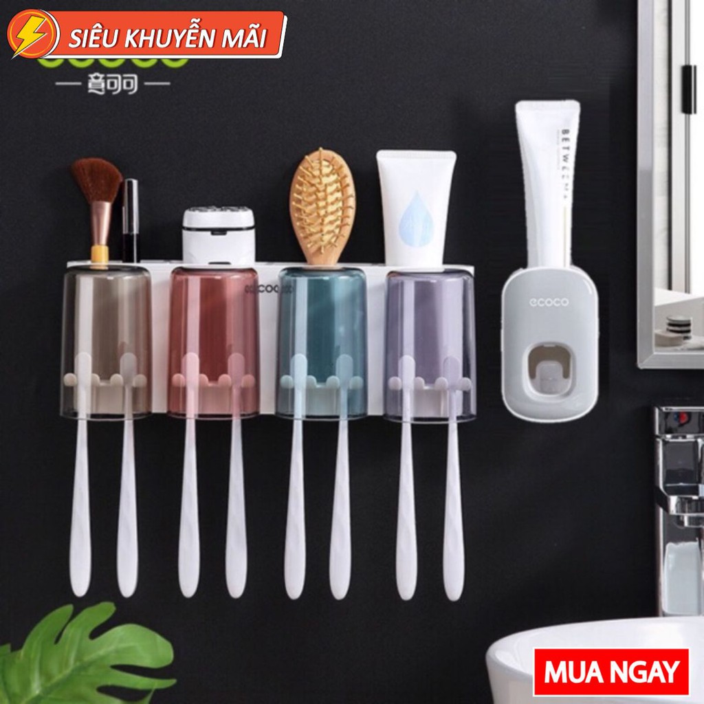 Nhà cửa & Đời sống > Đồ dùng phòng tắm > Kệ đựng bàn chải, kệ nhả kem đánh răng || COMBO KỆ ĐỰNG 4 CỐC MÃ E1909 VÀ 1 NHẢ KEM ĐÁNH RĂNG ECOCO CAO CẤPCòn hàng