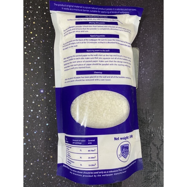 1 gói keo bột pha với 5l nước dán được 30-40m2