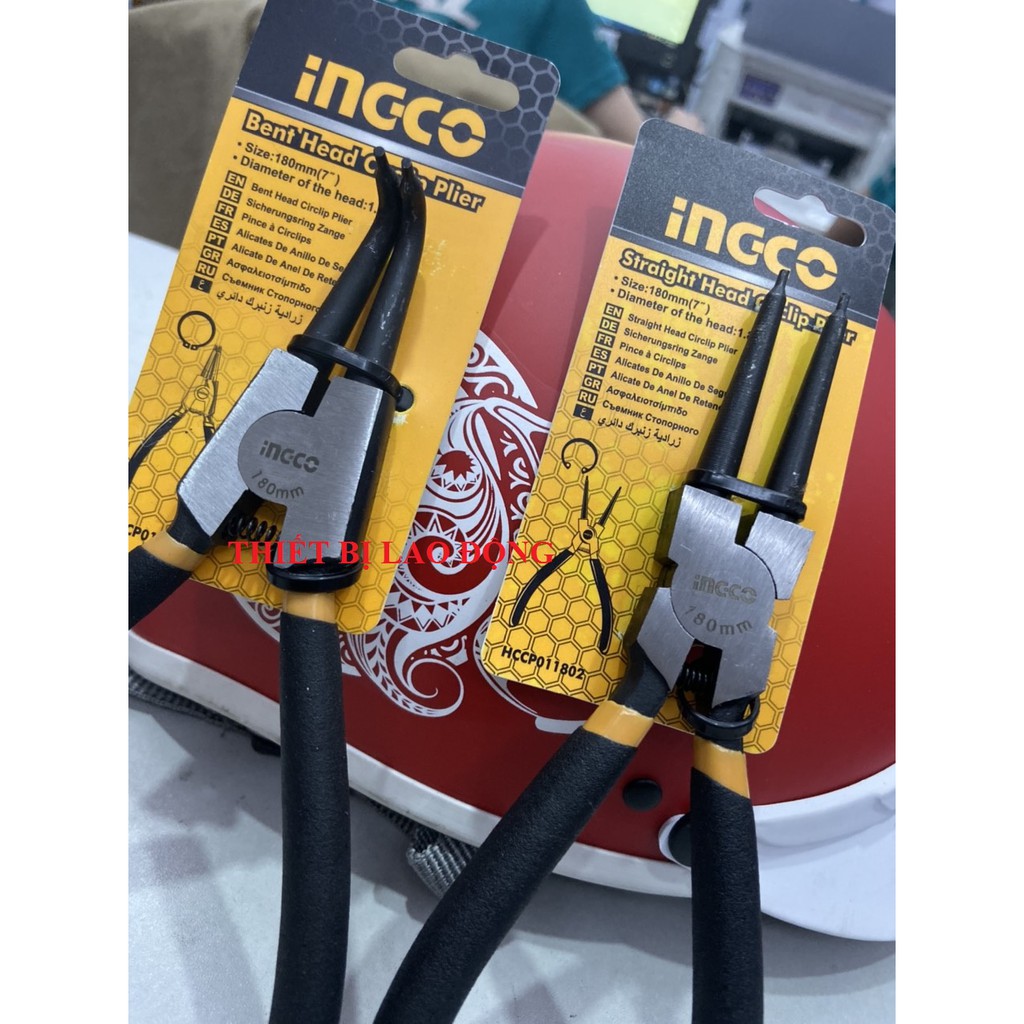 COMBO Kìm mở phe vòng trong Ingco HCCP011802 + Kìm mở phe vòng ngoài mũi cong Ingco HCCP011751