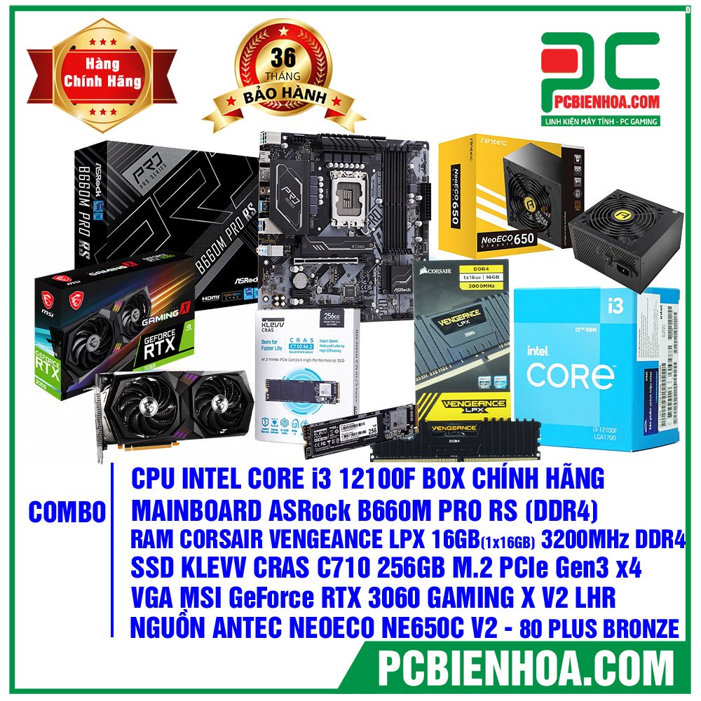 Giới thiệu Combo linh kiện Gen 12 : I3 12100F B660M 16G 650W 3060 12G Chính hãng 36T