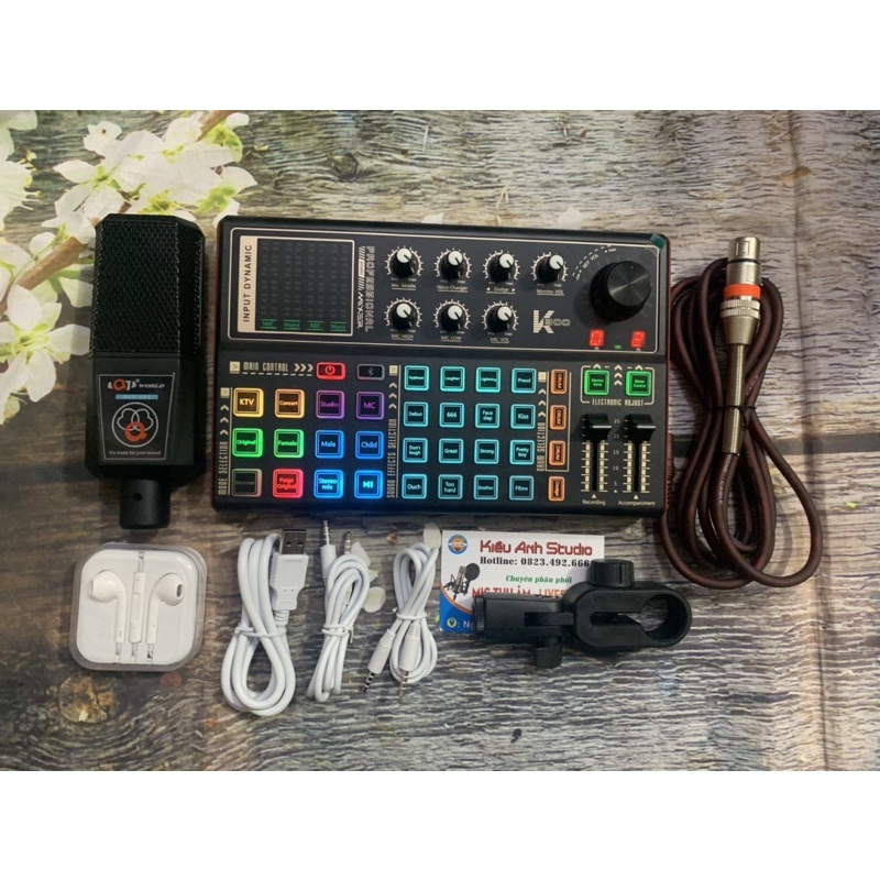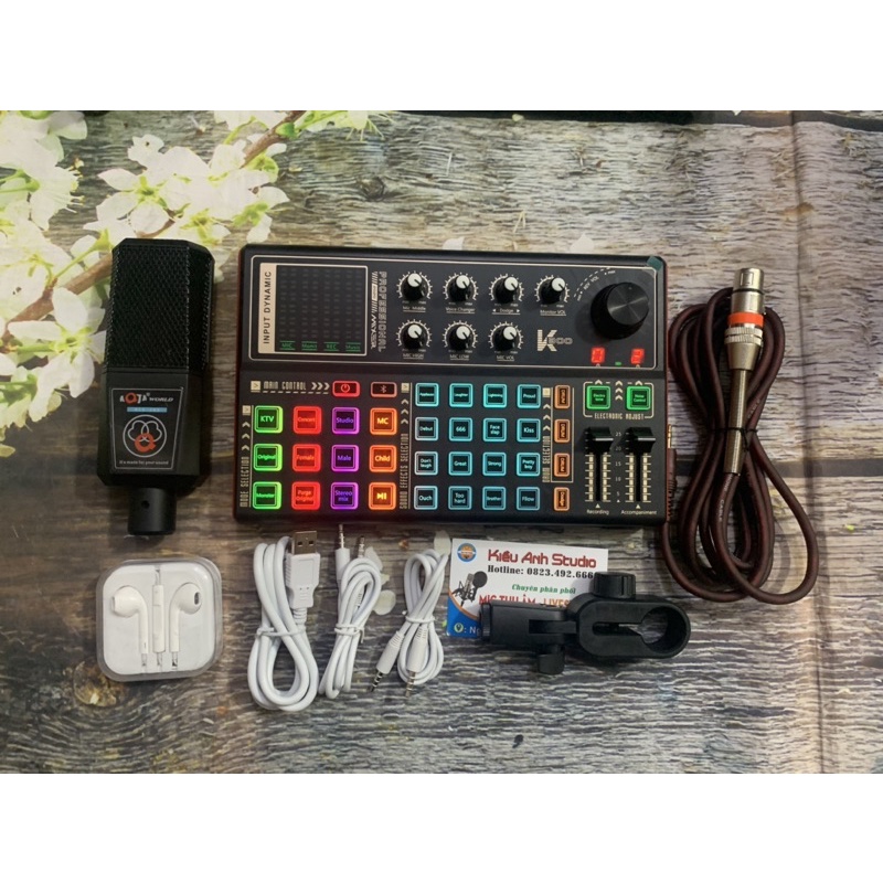 combo livestream chuyên nghiệp soundcard K300 và mic AQTA ALC 280 tặng kèm tai nghe nhét tai