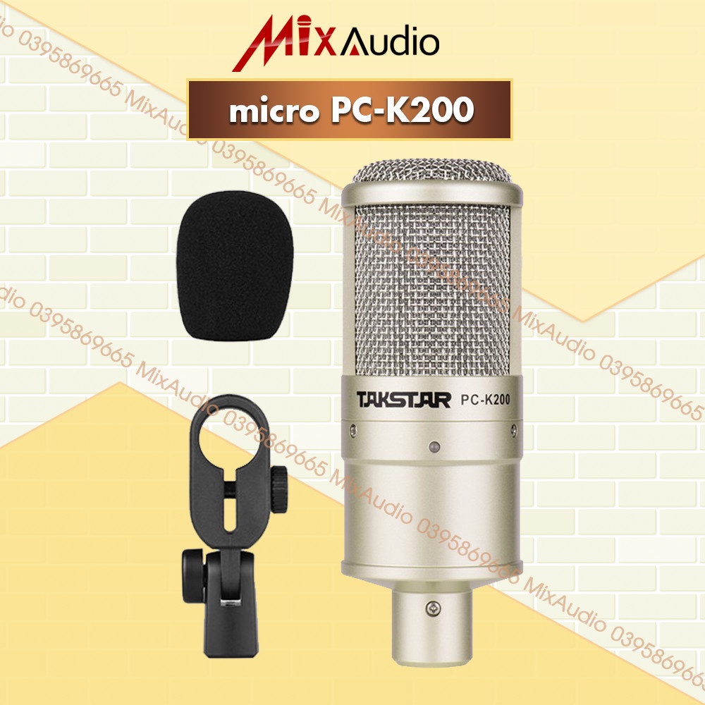 - Micro thu âm takstar PC-K200: Là sản phẩm micro sử dụng công nghệ cấu tạo condenser (tụ điện) là công nghệ sản xuất micro của các hãng mic thu âm chuyên nghiệp sử dụng.