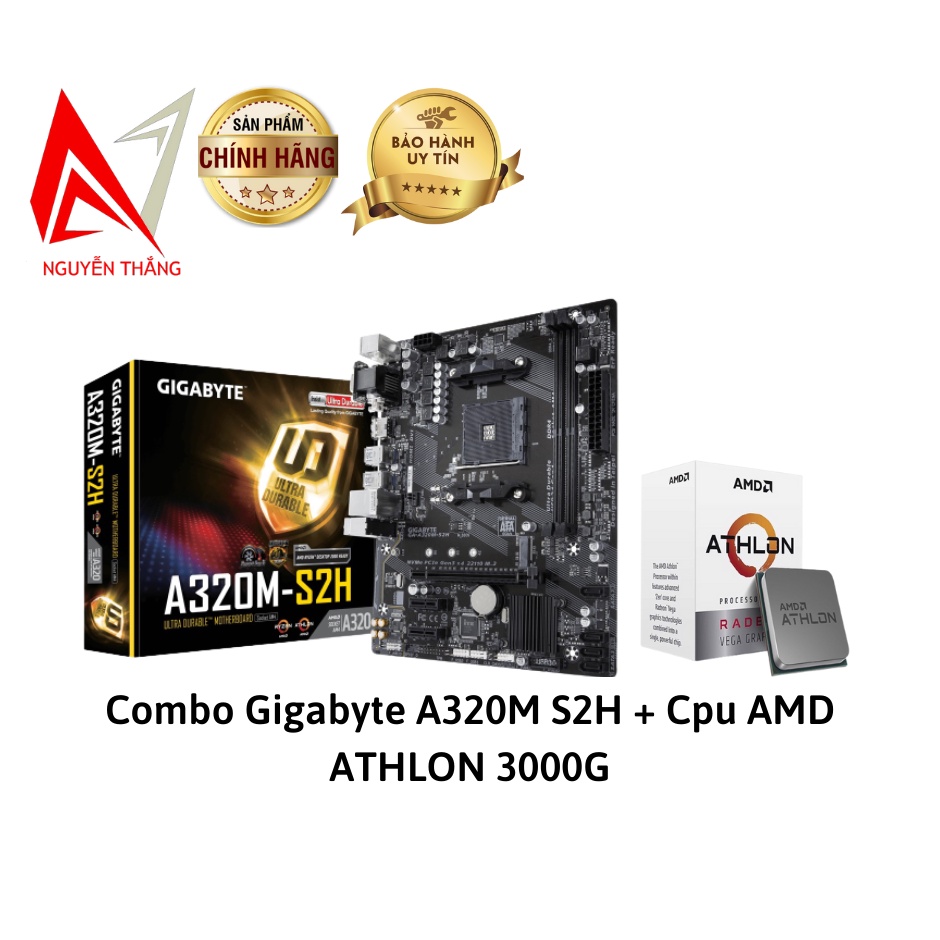 Combo Mainboard Gigabyte A320M S2H + Cpu AMD ATHLON 3000G chính hãng