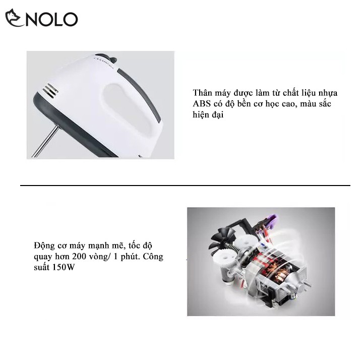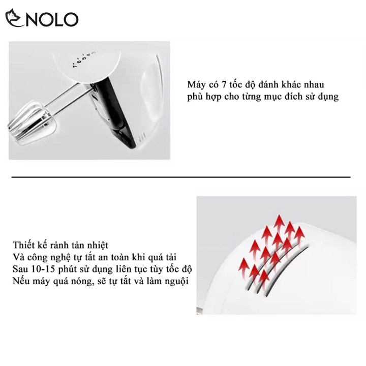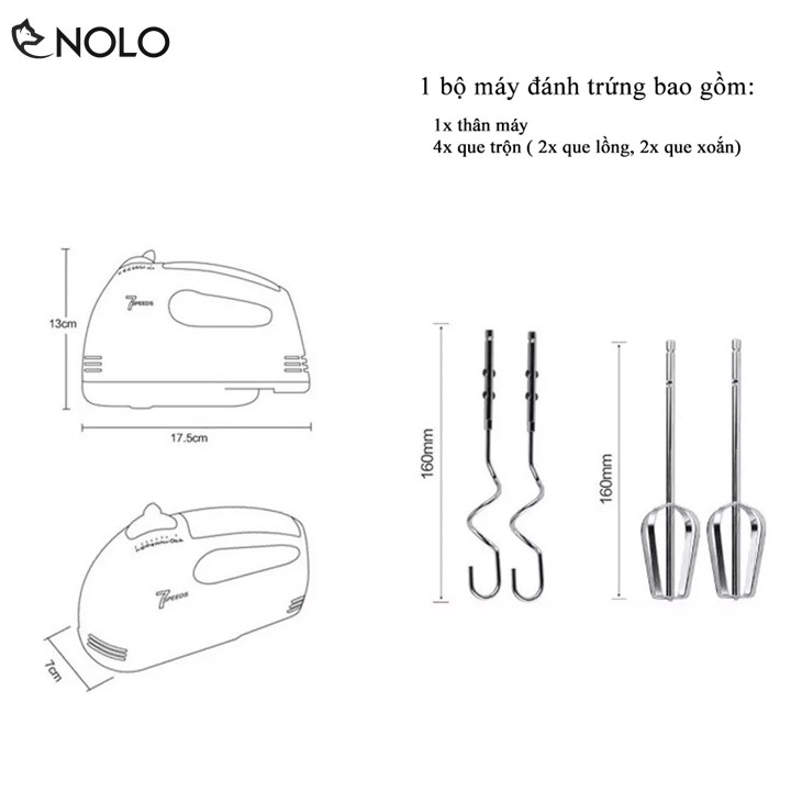 Kèm theo máy là 2 que lồng, và 2 que xoắn, que lồng được dùng thường xuyên để trộn bột, đánh bông trứng hay đánh bông kem tươi, còn que xoắn dùng để trộn bột làm bánh, thực phẩm,…