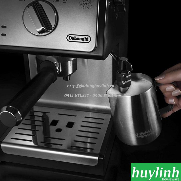- Đặc biệt, máy còn thiết lập hệ thống điều chỉnh bọt sữa với 2 cấp độ: Bọt kem cho Cappuccino hoặc sữa nóng cho Caffe Latte kiểu Ý với thiết kế vòi xoay linh hoạt 360 độ. Kết hợp với giá giữ bộ lọc chuyên nghiệp làm bằng vỏ nhôm cao cấp và 3 phin lọc: Một tách, hai tách và gói cà phê Espresso giấy.