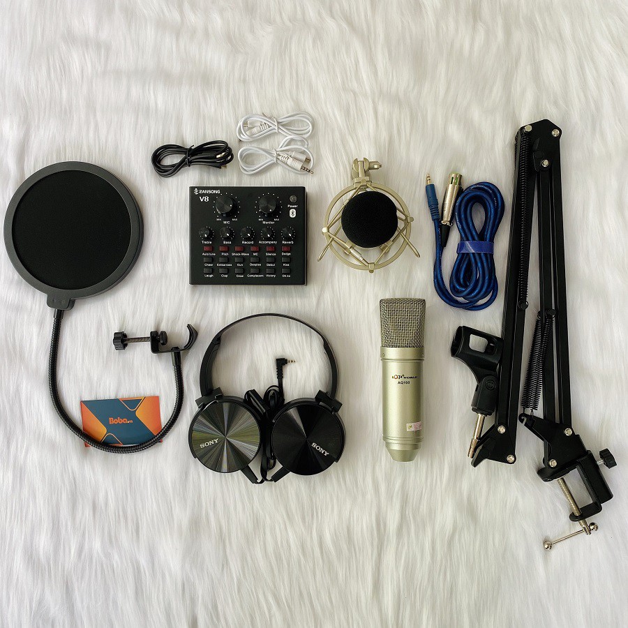 Combo Mic AQTA AQ100 và sound card V8 full phụ kiện tặng tai nghe sony