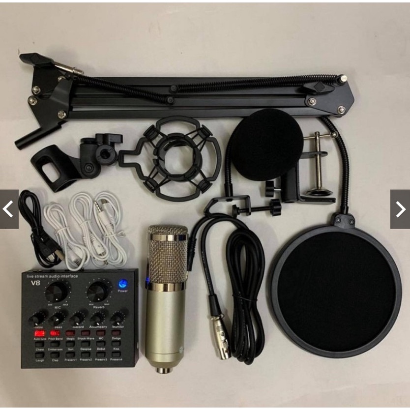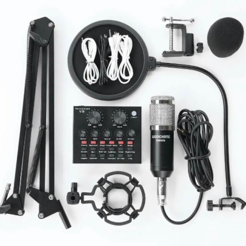 Thiết Bị Âm Thanh > Micro thu âm || Bộ combo mic livestream hát karaoke micro woaichang BM900 card V8 bluetooth và chân màng lọc BH 6 thángCòn hàng