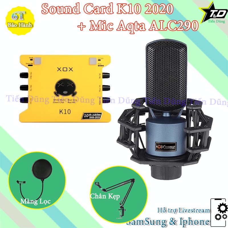 Thiết Bị Âm Thanh > Micro thu âm || Combo mic livestream karaoke Aqta ALC290 và sound card XOX K10 2020 bản tiếng anh đi kèm chân kẹp màng lọcCòn hàng