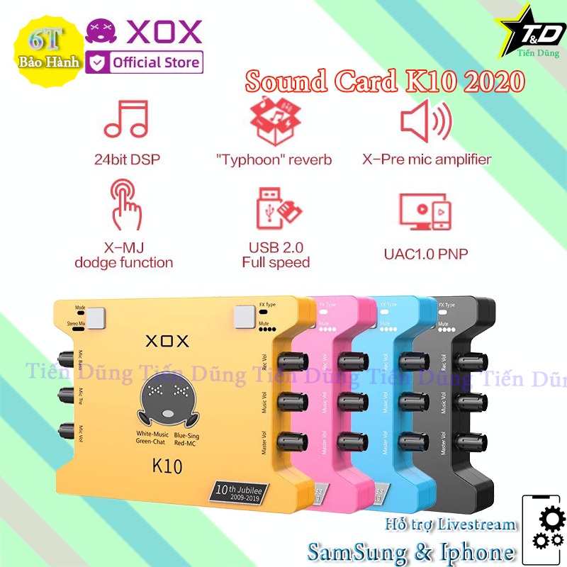 👉1 Sound card K10 2020 ( K10 2020, Dây truyền nhạc, dây nguồn , dây 3 đầu livestream)
