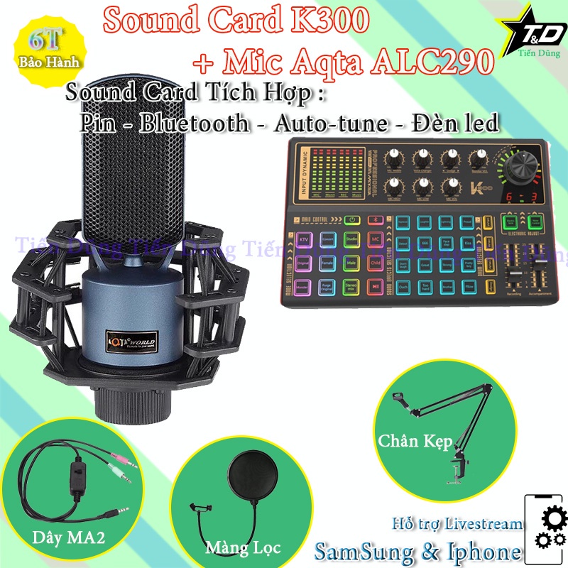 Thiết Bị Âm Thanh > Micro thu âm || Combo mic livestream karaoke Aqta ALC290 và sound card K300 có bluetooth Auto-tune đi kèm chân màng dây livestream MA2Còn hàng