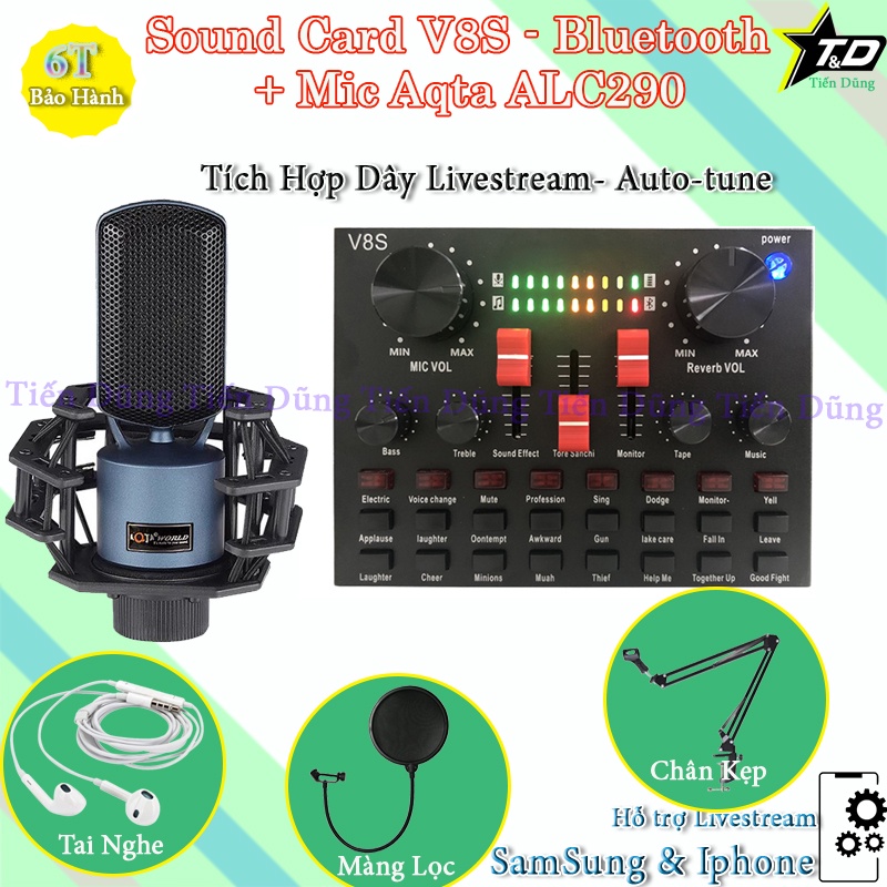 Combo Mic Livestream Karaoke Aqta ALC290 và Sound Card V8S có Bluetooth Auto-tune Đi Kèm Chân Kẹp Màng Lọc Tai Nghe Nhét.👉LƯU Ý : Shop có phân loại sản phẩm , Khách hàng mua sản phẩm như ảnh phân loại.