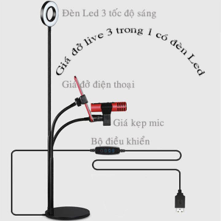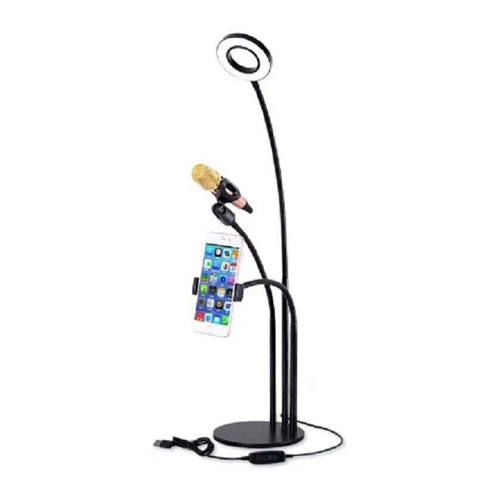 Bộ Dụng Cụ Giá Treo Điện Thoại Livestream 3in1 Tích Hợp Đèn Led Chỉnh 3 Mức Sáng Tối