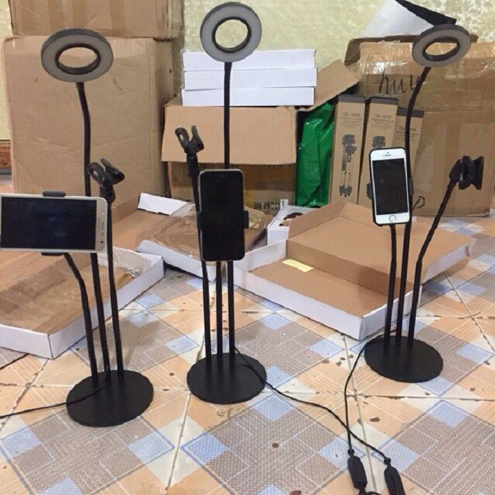 Bộ Dụng Cụ Giá Treo Điện Thoại Livestream 3in1 Tích Hợp Đèn Led Chỉnh 3 Mức Sáng Tối