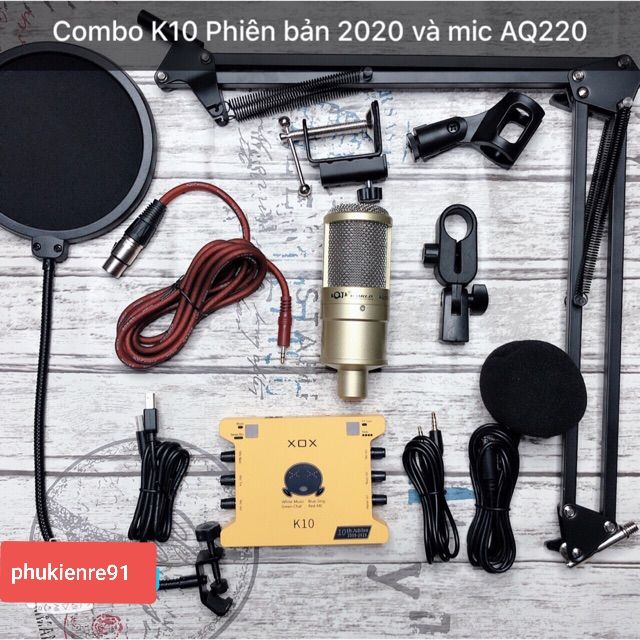 Combo mic livestream thu âm hát karaoke AQ220 Sound card k10 bản kỉ niệm 10 năm đầy đủ phụ kiện