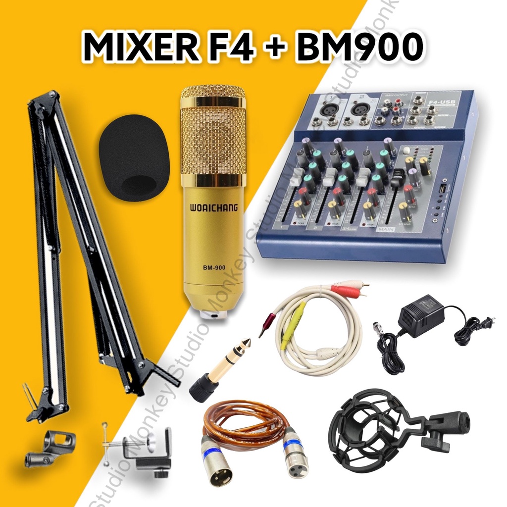 Tuy nhiên, trên thị trường có khá nhiều mẫu mic thu âm hát livestream và sound card để chỉnh âm nhưng không phải loại nào cũng tốt. Vì vậy, Monkey Studio sẽ giới thiệu đến bạn bộ combo mic thu âm hát livestream chuyên nghiệp MIXER F4 BLUETOOTH VÀ MIC BM900