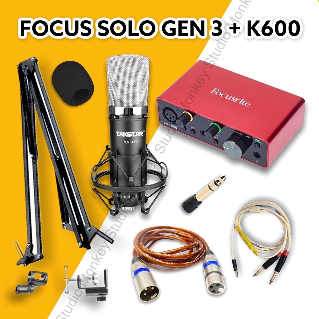 Bộ Combo Mic Thu Âm Hát Livestream Focusrite Solo Gen 3 & Mic TAKSTAR PC K600 ⚡BH 1 NĂM⚡ Thu Âm Điện Thoại Máy Tính