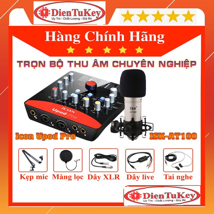 Bộ Combo Mic Thu Âm Hát Livestream Soundcard Icon Upod Pro, ISK AT100 Thu Âm Điện Thoại Máy Tính