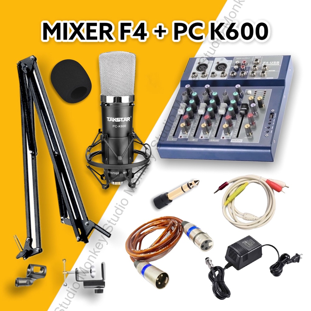 Tuy nhiên, trên thị trường có khá nhiều mẫu mic thu âm hát livestream và sound card để chỉnh âm nhưng không phải loại nào cũng tốt. Vì vậy, Monkey Studio sẽ giới thiệu đến bạn bộ combo mic thu âm hát livestream chuyên nghiệp MIXER F4 BLUETOOTH VÀ MIC TAKSTAR PC K600