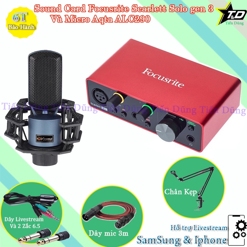 Combo Mic Thu Âm Livestream ALC290 và Sound Card Focusrite Scarlett Solo Gen 3 Kèm Chân Kẹp Dây Micro 3m dây Livestream 2 jack 6.5.🍀 TRỌN BỘ MIC AQTA ALC290 VÀ Focusrite Scarlett Solo Gen 3 GỒM :