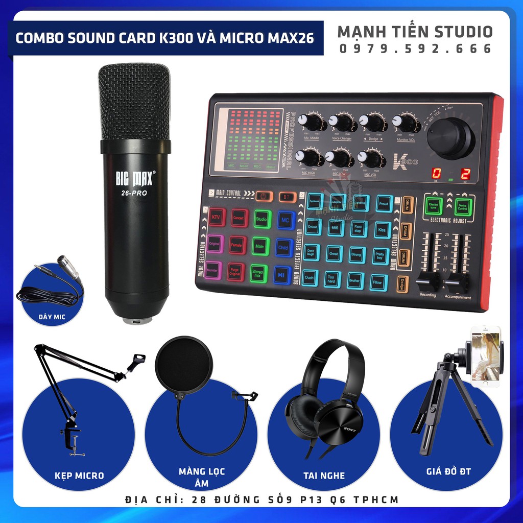 Thiết Bị Âm Thanh > Micro thu âm || combo micro Big max 26 pro + sound card K3000 thu âm livestream karaoke chân kẹp míc, màng lọc âm tai nghe kẹp bạch tuộcCòn hàng