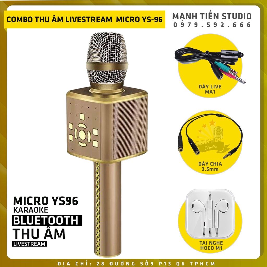 Combo Micro bluetooth Karaoke YS96 - Vừa hát vừa Livestream & Thu âm tặng kèm Ma1 - dây chia tai nghe - tai phone