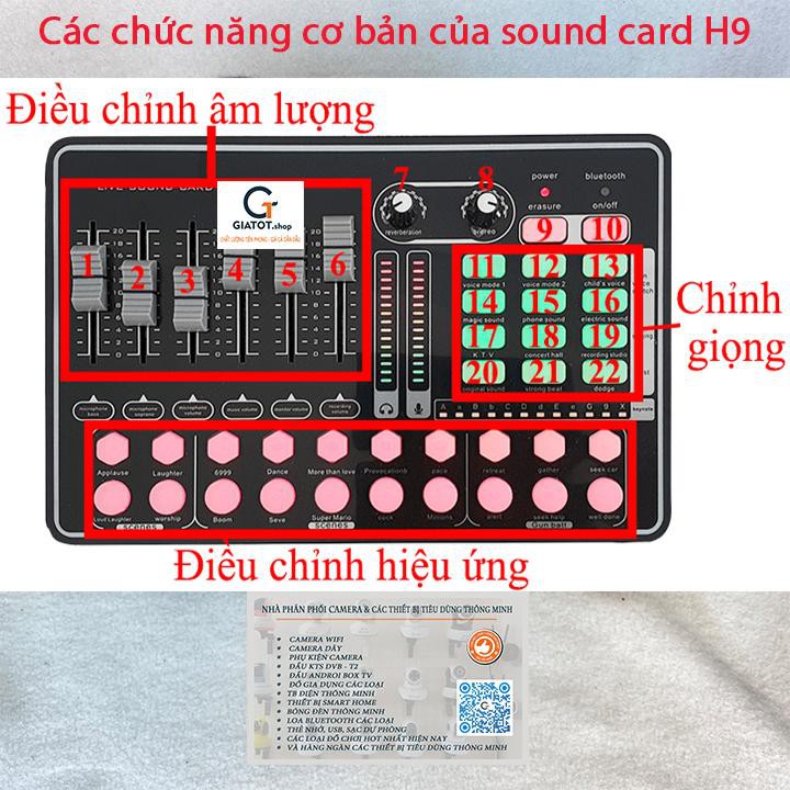 Cổng kết nối phía sau Sound card Bluetooth H9 được đánh số từ trái sang phải từ 1 đến 10 sử dụng như sau: