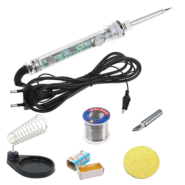 Combo Mỏ Hàn 907 220V-60W Và 5 Món Phụ Kiện (1 Mũi Hàn Dao, 1 Kệ Hàn, 1 Bọt Biển, 1 Thiếc OK, 1 Nhựa Thông)