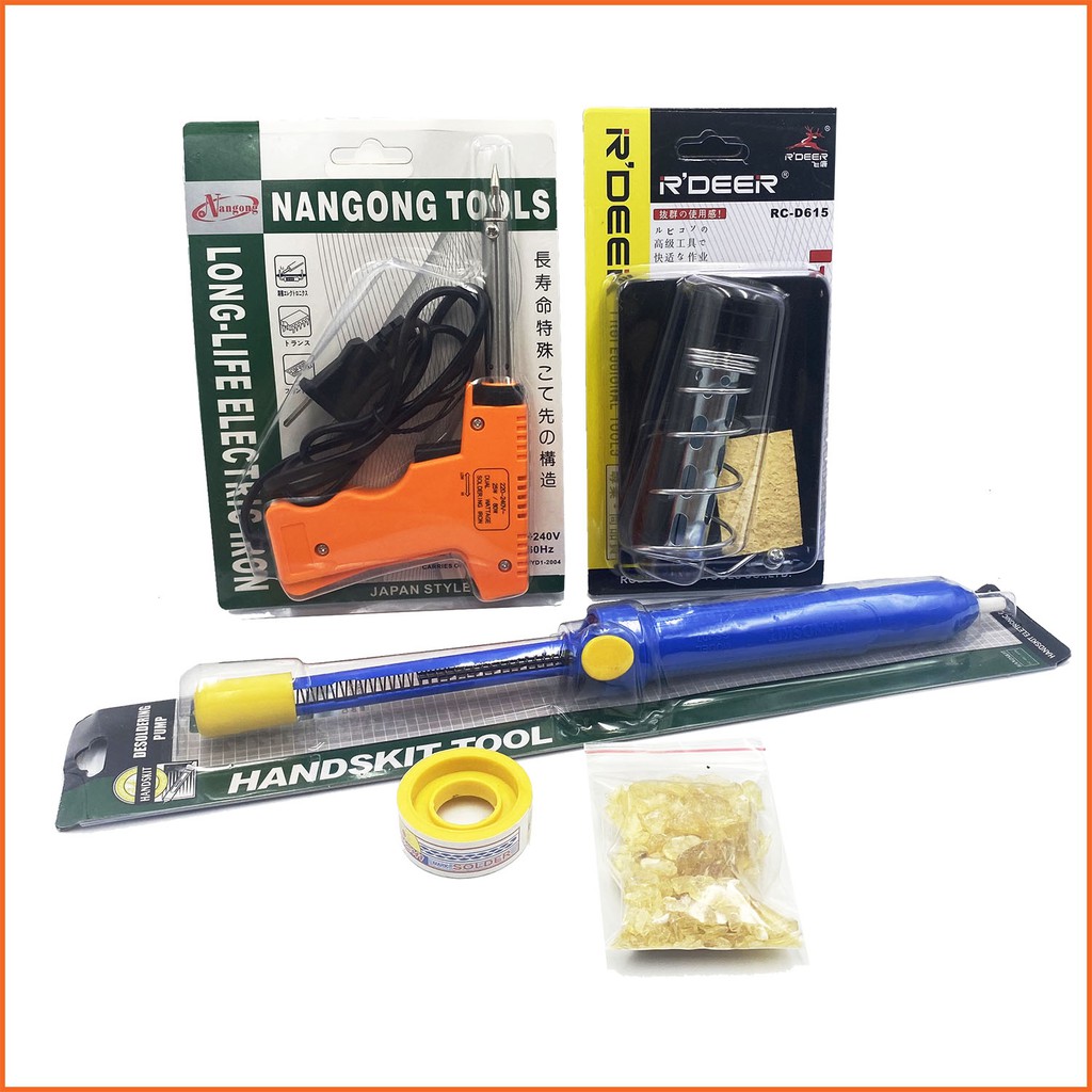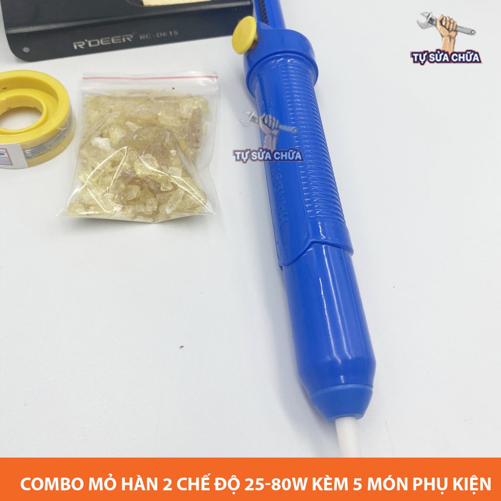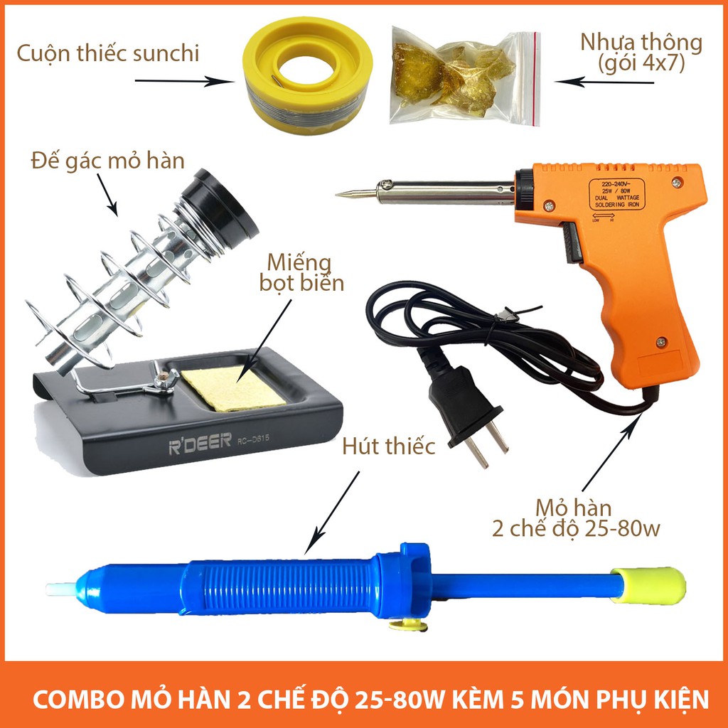 Combo Mỏ Hàn Thiếc 2 Chế Độ 25-80W và 5 Món Phụ Kiện ( Đế gác mỏ hàn, Bọt Biển, Thiếc Sunchi, Nhựa Thông, Hút Thiếc)