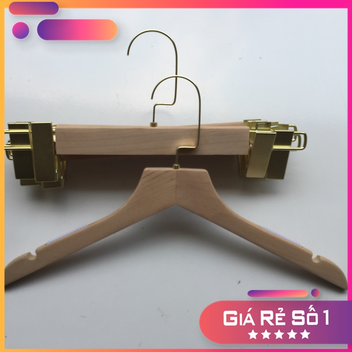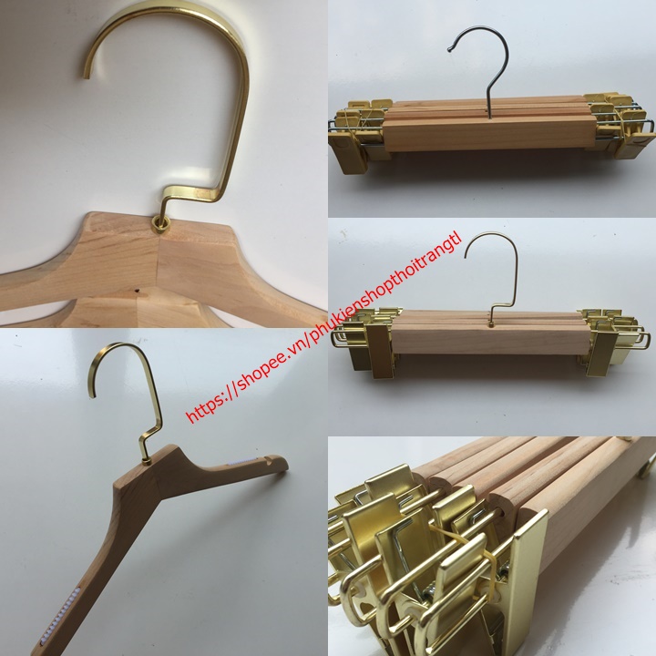 - Mẫu áo gỗ mạ vàng + móc kẹp quần gỗ mạ vàng cao cấp.
