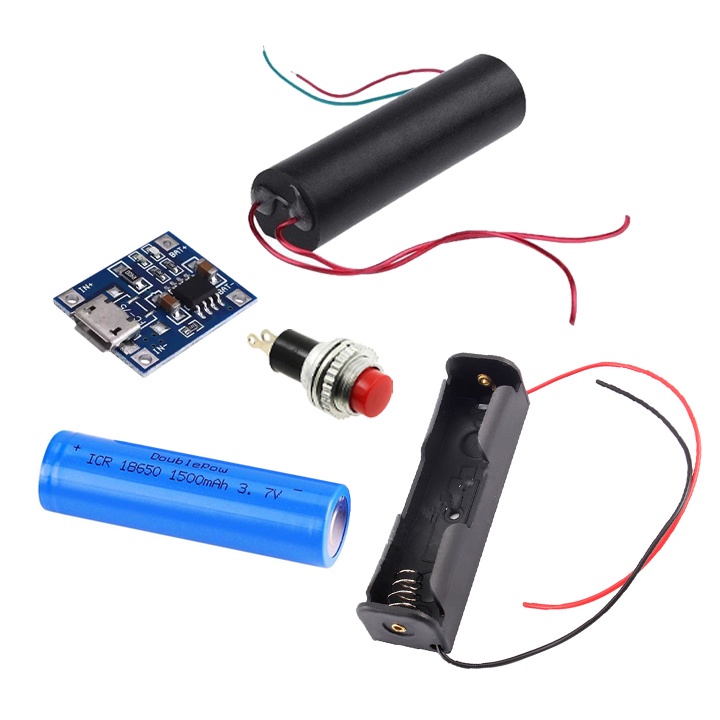 Combo Module Tăng Áp 3.7V - 400kV (Pin Lithium 18650, Đế Pin 18650, Mạch Sạc Pin, Module Cao Áp 400kV, Nút Nhấn Đề)