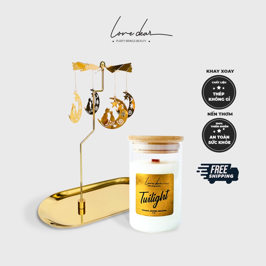 Combo Nến Thơm Tinh Dầu và Khay Nến Xoay LoveDear Cao Cấp Decor Trang Trí Cho Phòng Ngủ Phòng Khách 200g