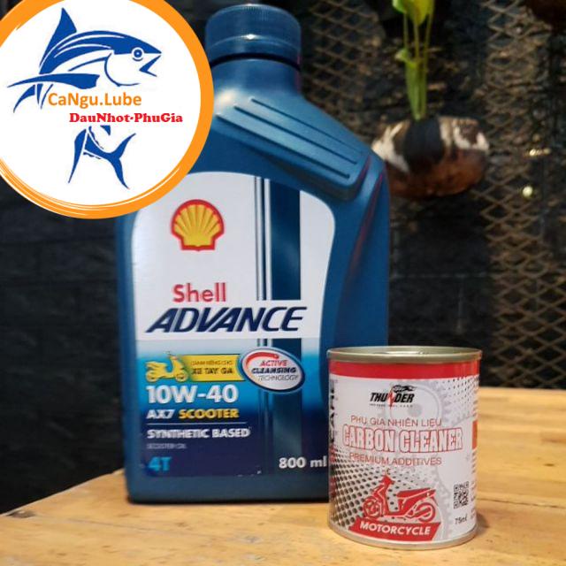 Giới thiệu [COMBO NHẸ NHÀNG] Nhớt shell AX7 Scooter 10W40 0.8L, vệ sinh kim phun Thunder và nhớt shell Ax7 xe ga