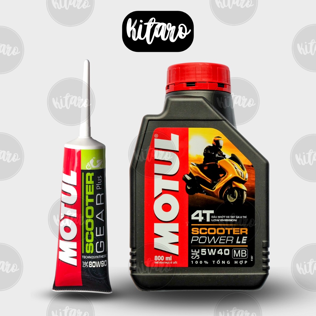 Combo nhớt xe tay ga Dầu Motul scooter power le 5w40 800ml + nhớt hộp số