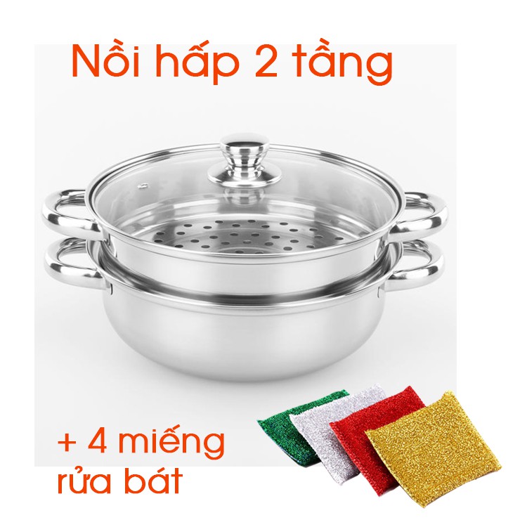 COMBO NỒI HẤP 2 TẦNG + 4 MIẾNG RỬA BÁT TIỆN LỢI🍀Điểm nổi bật :