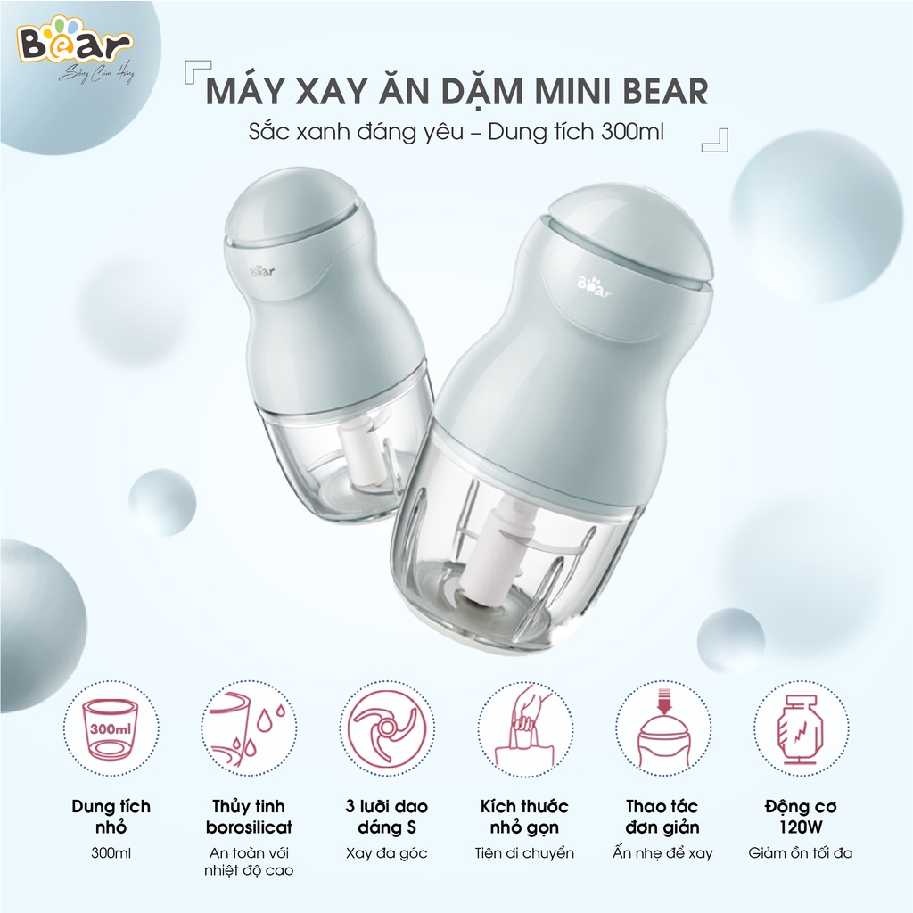 Combo Nồi Nấu Chậm 2,5L Bear SUBE003 và Máy Xay Ăn Dặm 0,3L Bear B03V2 nấu cháo, chưng yến Bảo hành Chính hãng