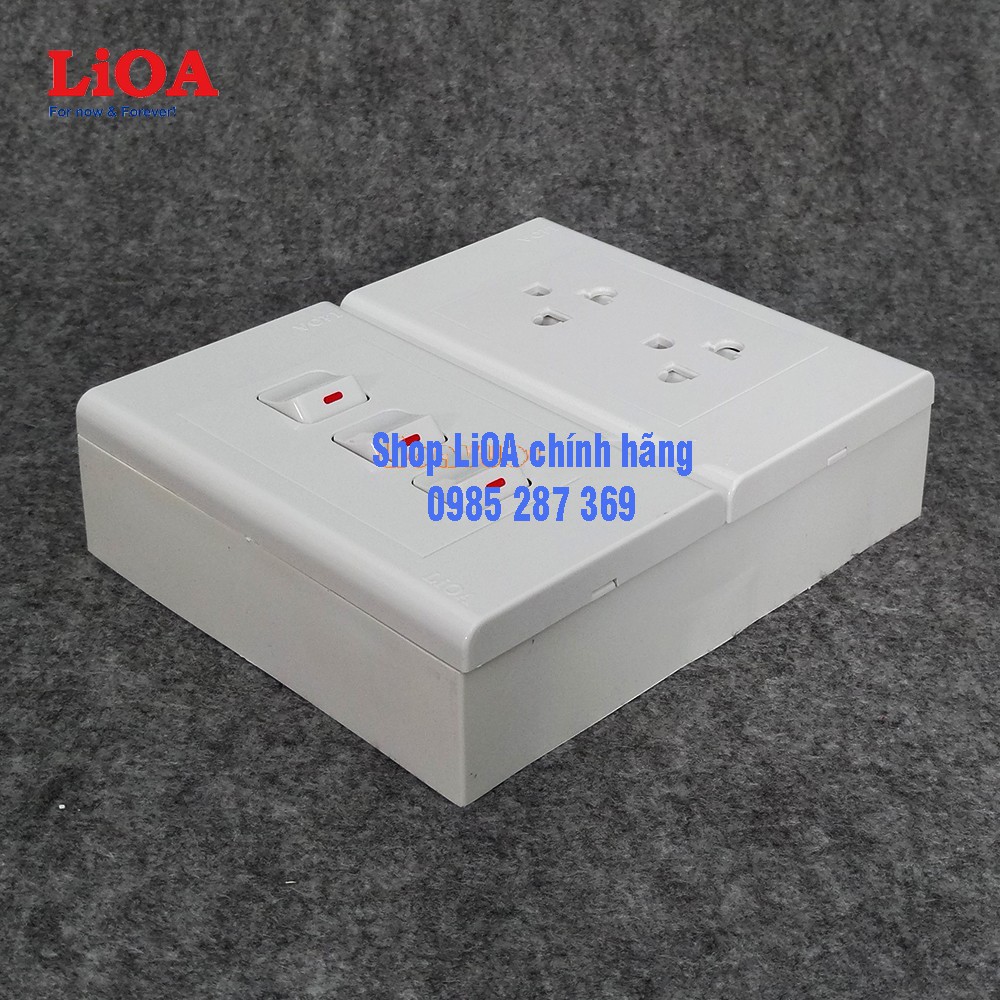 Combo ổ cắm điện đôi 3 chấu LiOA 16A 3520W + 3 công tắc điện - Lắp nổi