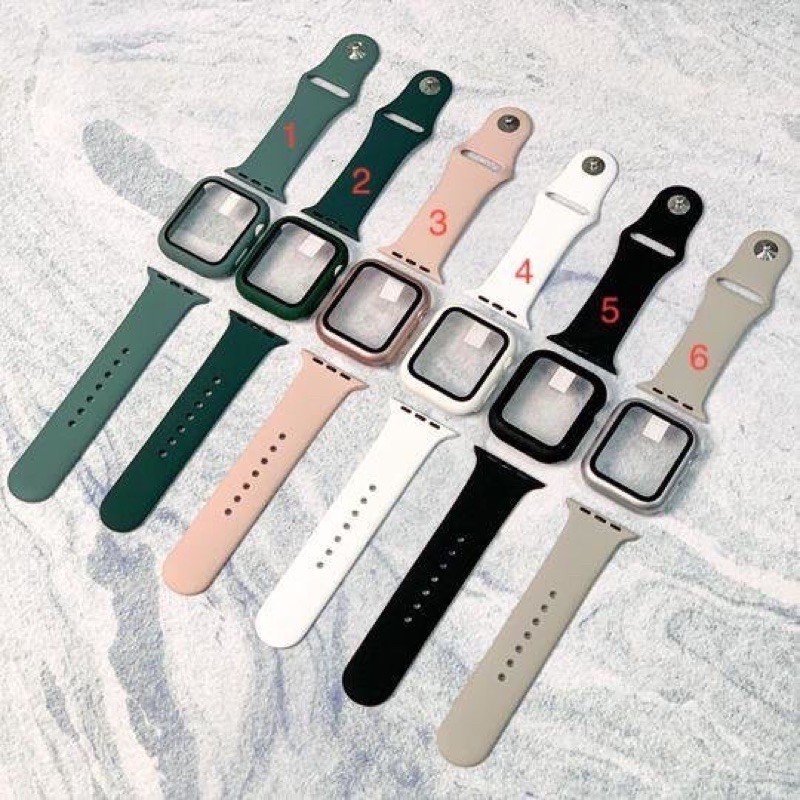 ⌚ COMBO SIÊU HOT CHO APPLE WATCH ⌚Ốp liền kính cường lực 9H & Dây Silicon