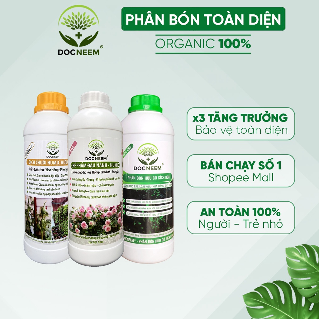 Giới thiệu Combo Phân bón toàn diện cho hoa hồng, cây cảnh, 3 lít, phân bón hữu cơ giúp cây nhiều mầm, sai hoa, chính hãng DOCNEEM