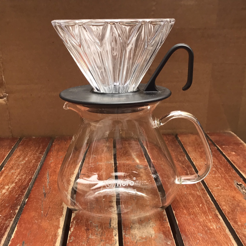Combo Phễu và Bình pha cà phê, trà, V60 bằng thuỷ tinh, cán gỗ, nhiều màu chính hãng Hero - 3C Roastery
